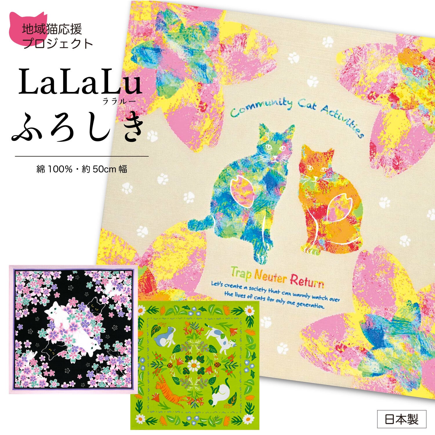 〜地域猫活動応援プロジェクト〜不幸な飼い主のいない猫を減らして人と猫が幸せに共存できる社会を目指す“地域猫活動”を応援します。プロジェクト商品の売上の一部は、全国各地の地域猫活動を支援されている『公益財団法人日本動物愛護協会』へ寄付されます。